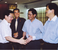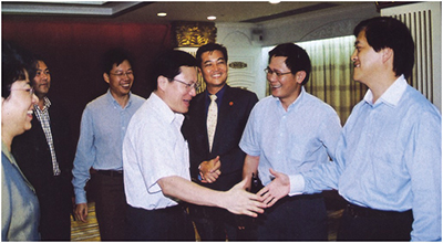 時任廣州市市長張廣寧(中)親切接見公司董事長曾滿洪(右二)