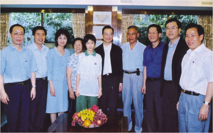 時任中華人民共和國國務院總理溫家寶(右五)、時任廣東省省委書記現(xiàn)任中華人民共和國人大常委會委員長張德江(右二)、時任廣東省省長黃華華(左二)、時任廣東省省委副書記蔡東士(右一)、時任廣州市市委書記林樹森(左一)與公司董事長曾滿洪(右三)及家人在一起。