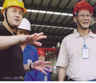 時任廣州市黃埔區(qū)區(qū)委書記現(xiàn)任廣州市人大常委會副主任謝寶懷(前左)來我工廠視察
